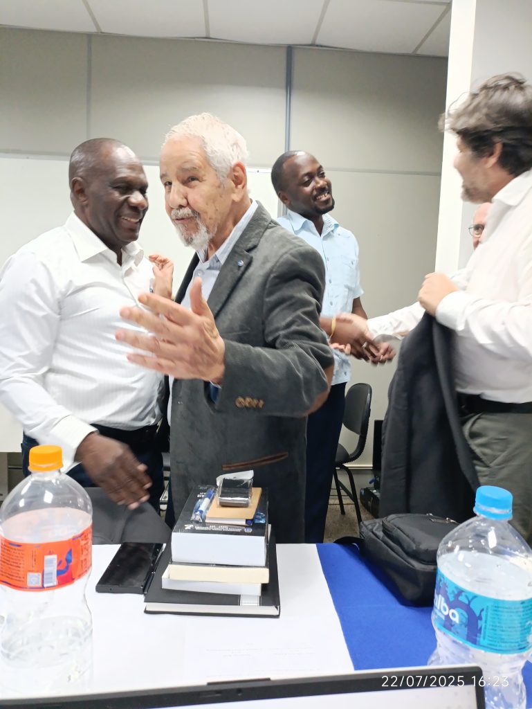 A comitiva, formada pelo vice reitor da AAEE, Prof. Dr. António Caetano Lourenço e pelos professores MSc Carlos Nunes e Faizal Sultuane, foi recebida pelos professores do INEST no primeiro dia de reuniões e pela Superintendência de Relações Internacionais, no segundo dia de trabalho.
